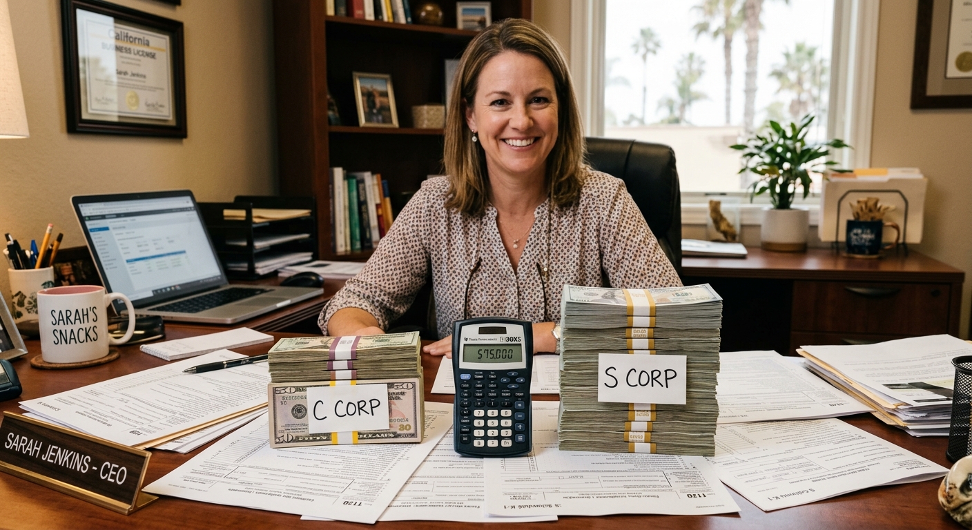 A California business owner earning $75,000 tax on C Corp vs S Corp structures will pay roughly $34,100 through a C Corp after federal entity tax, dividend double taxation, and California’s 8.84% franchise rate. That same $75,000 routed through an S Corp lands closer to $18,900 in total tax. The gap is $15,200 per year, and it compounds every single year you stay in the wrong entity. One IRS form separates those two outcomes.